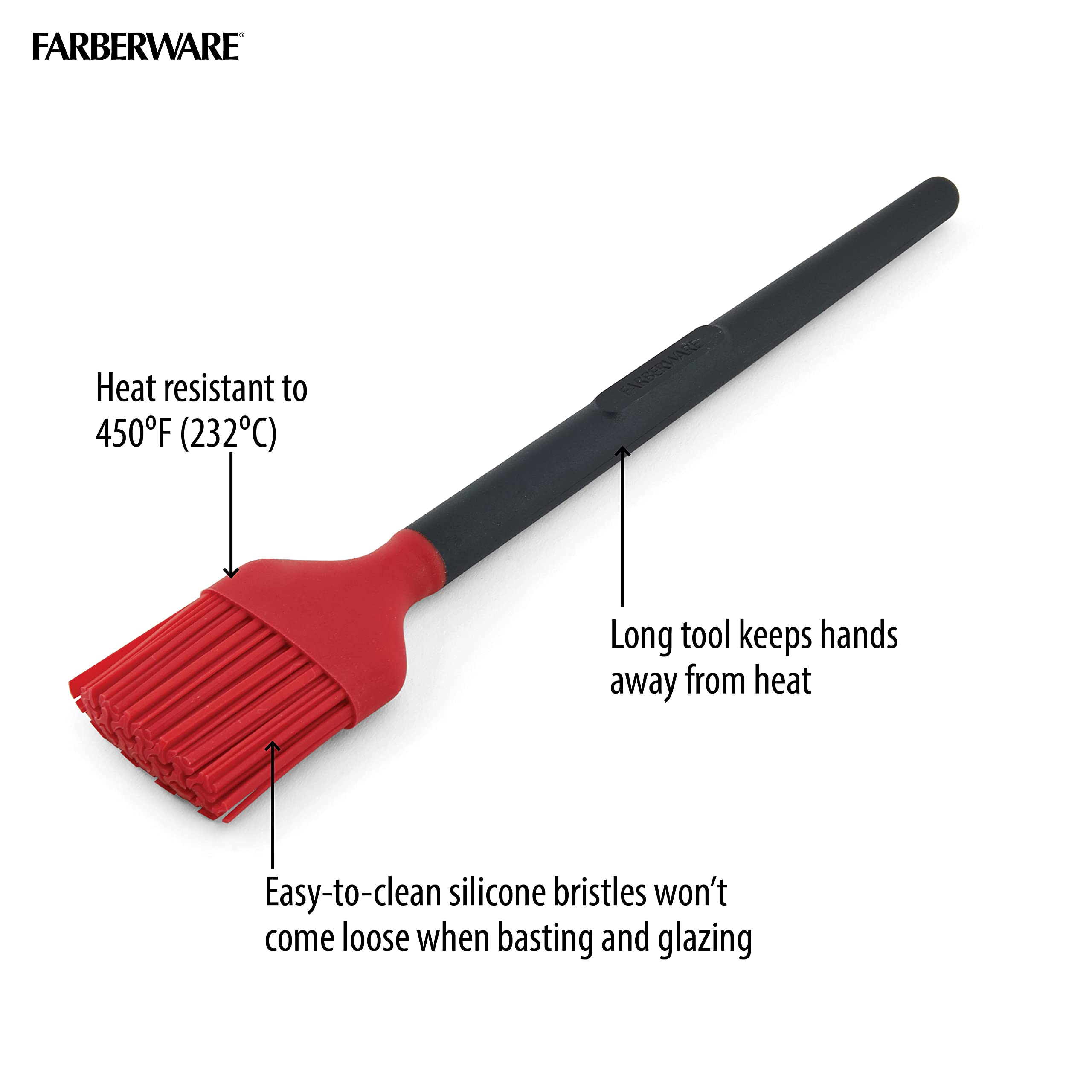 Farberware Barbecue Silicone and Plastic Basting Brush, 11.1-Inch, Red and Black