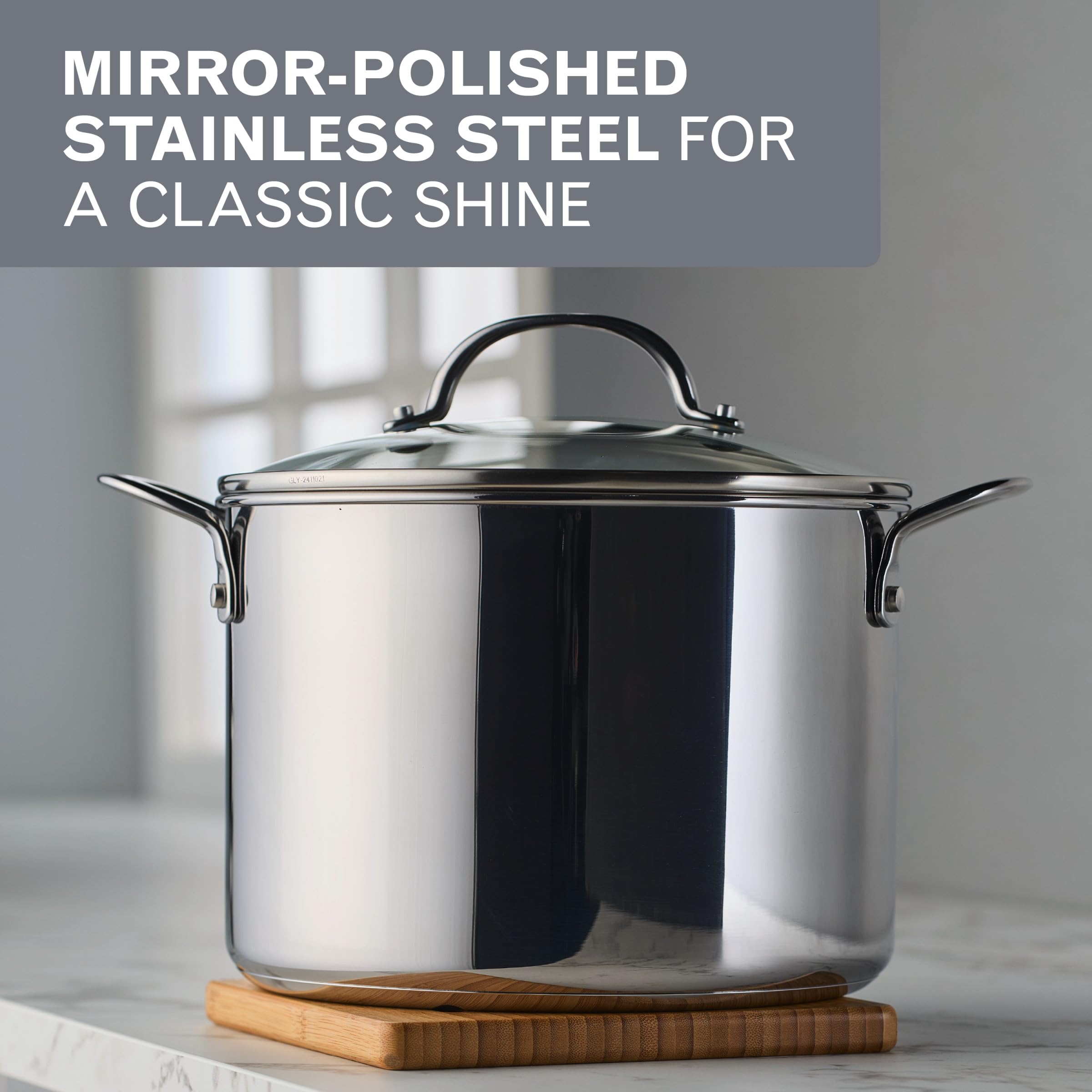 - ICONIC CLAD BASE: Thick aluminum core bonded in stainless steel delivers exceptional heat distribution, warp resistance, induction-ready cooking, and true dishwasher-safe strength